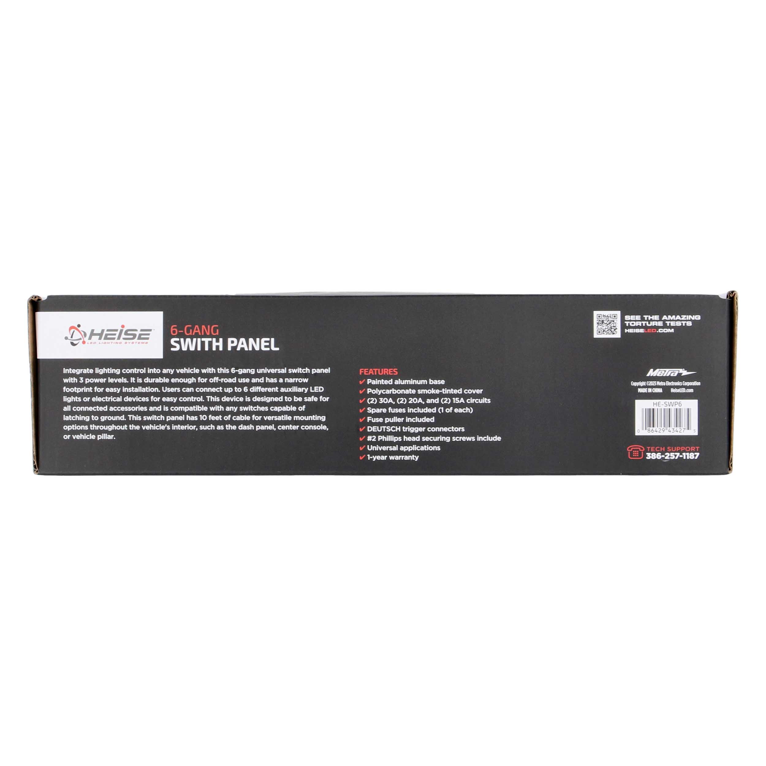 Integrate lighting control into any vehicle with this 6-gang universal switch panel with 3 power levels. It is durable enough for off-road use and has a narrow footprint for easy installation. Users can connect up to 6 different auxiliary LED lights or electrical devices for easy control. This device is designed to be safe for all connected accessories and is compatible with any switches capable of latching to ground. This switch panel has 10 feet of cable for versatile mounting options throughout the vehicle’s interior, such as the dash panel, center console, or vehicle pillar.