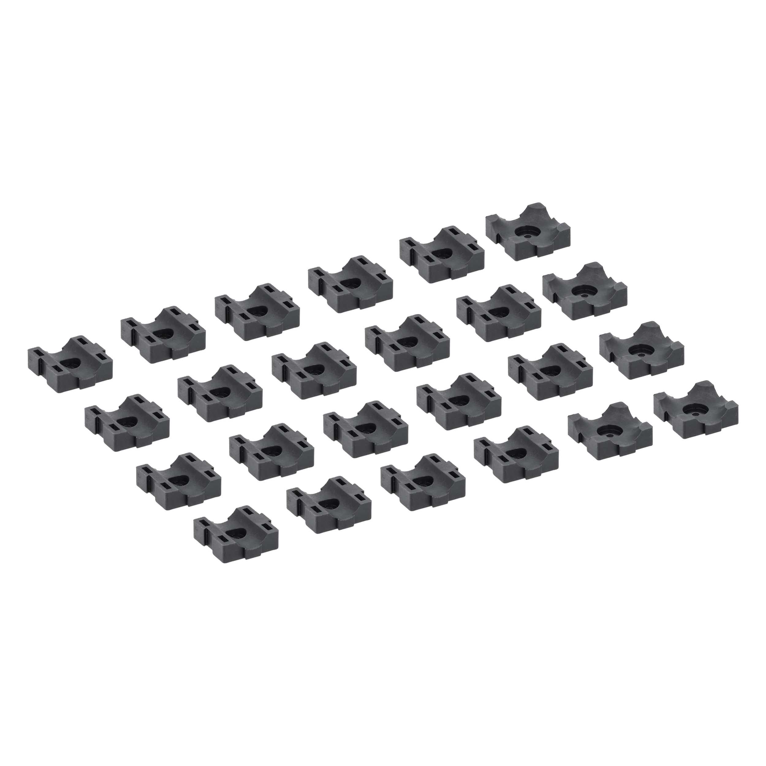 This convenient cable clamp set makes it easy for installers to secure and organize wiring for a show-quality audio installation. The included cable clamps feature a unique dovetail click-lock design that attaches single or bundled wires to surfaces and allows multiple clamps to be assembled in creative configurations. This innovative design keeps wires evenly spaced in straight runs or around corners. The wiring clamps are installed securely to vehicle surfaces with stainless steel screws to ensure a strong anchor for attached wiring, eliminating the hassle of failed adhesives and loosening wire bundles.