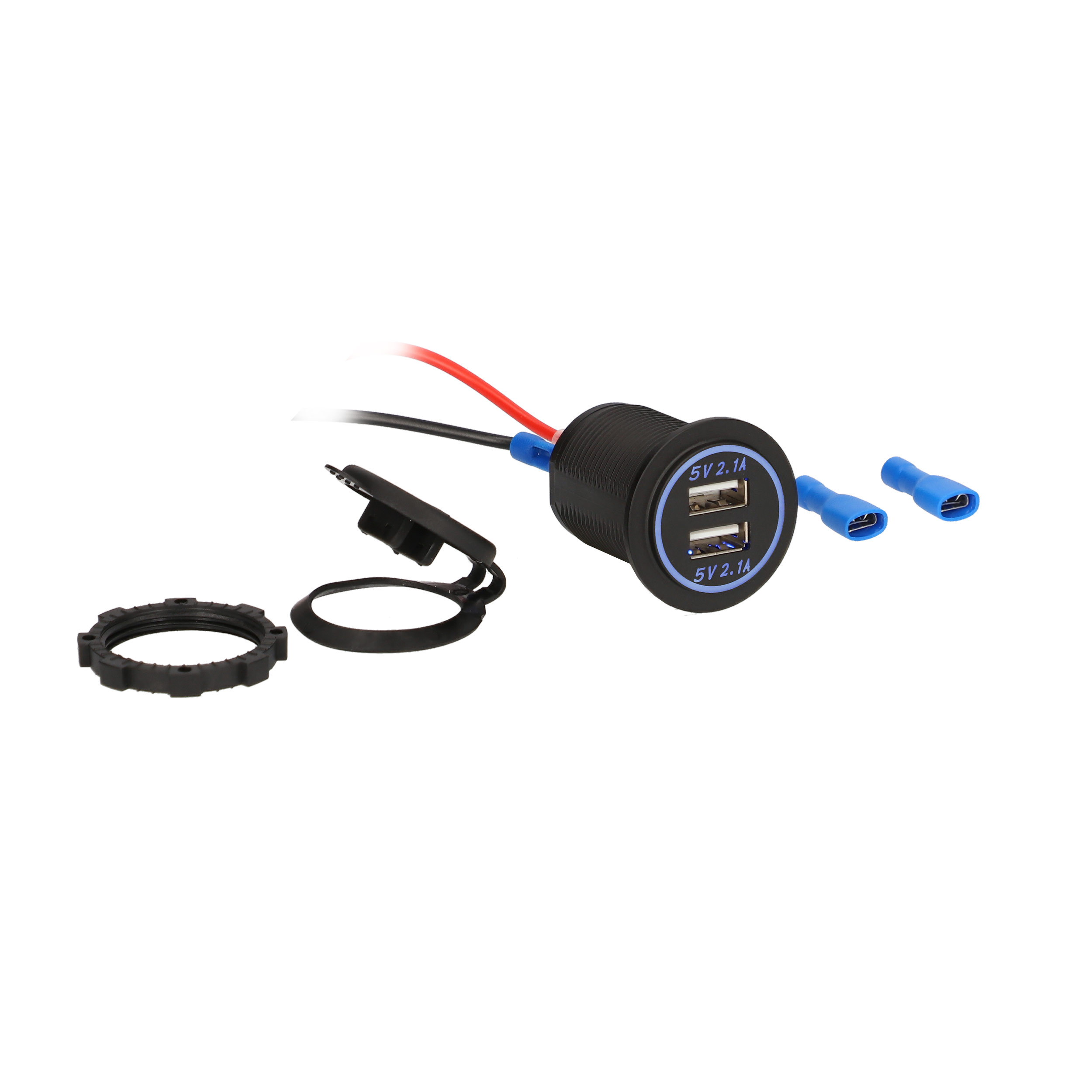 Dual USB Charger 4.2 Amp Flush Mount - Blue - Retail Pack