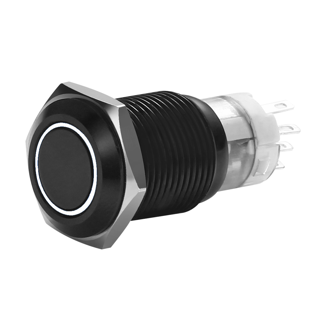 19 MM BLACK MOMENTARY SWITCH WITH HARNESS 5A IP67 - WHITE