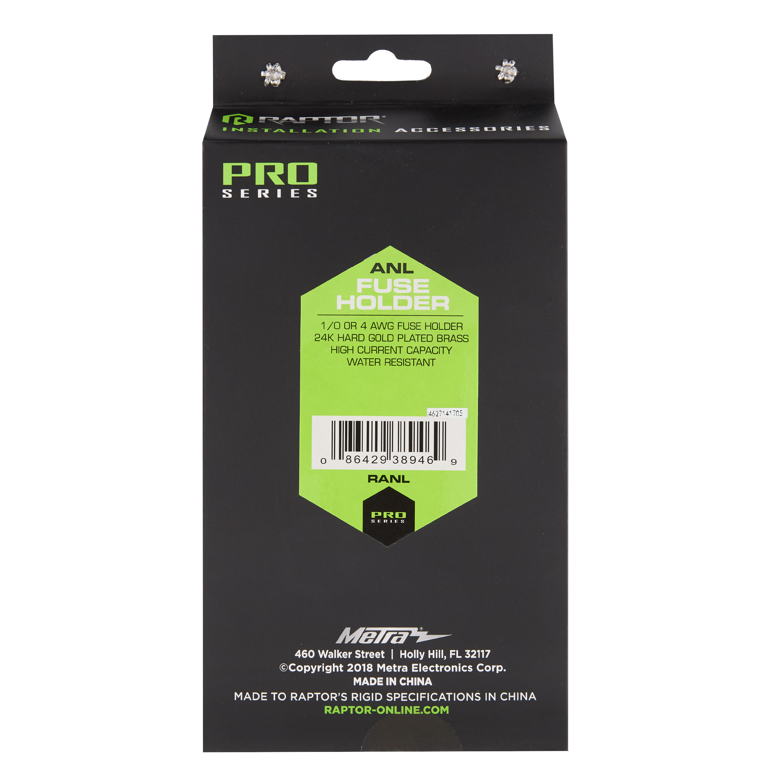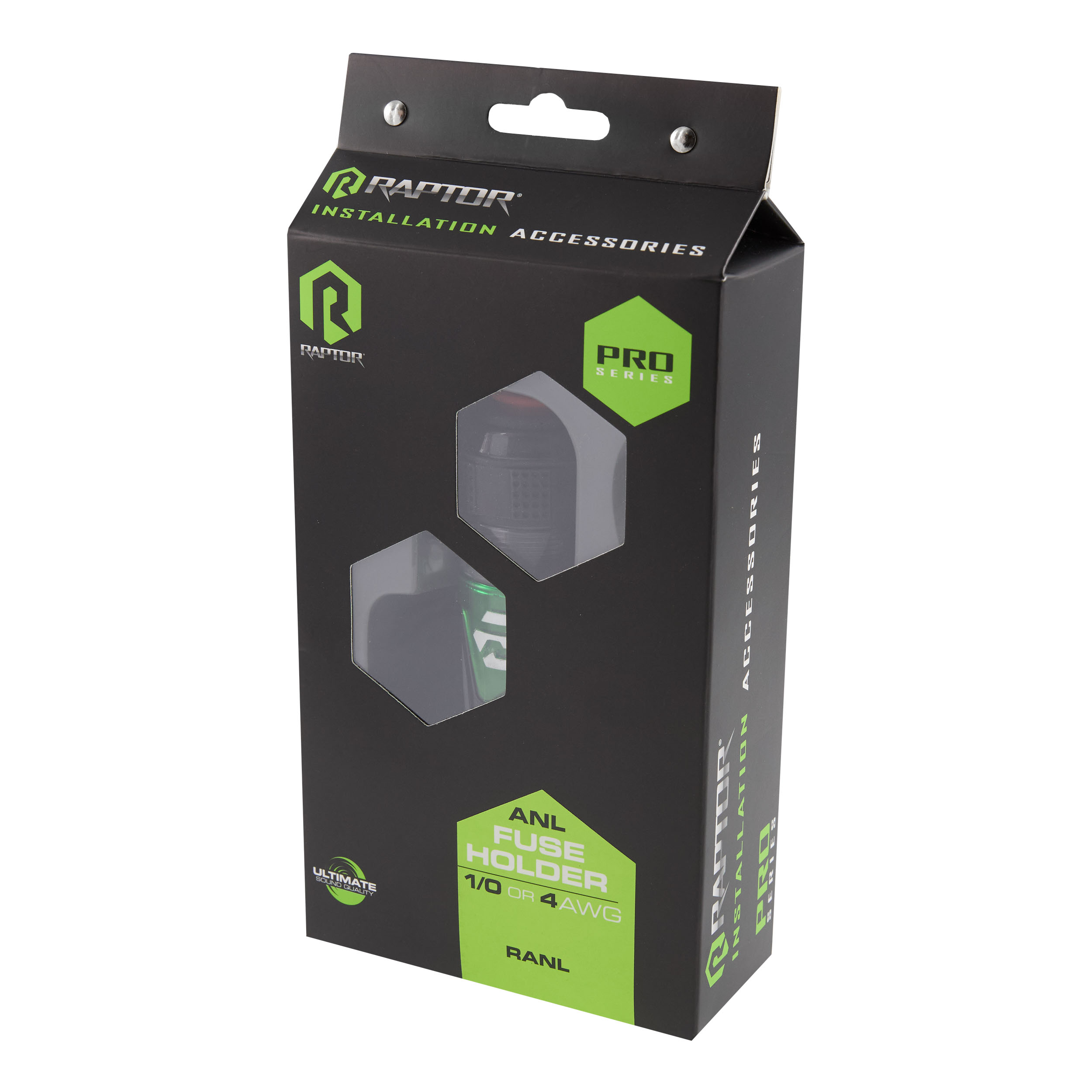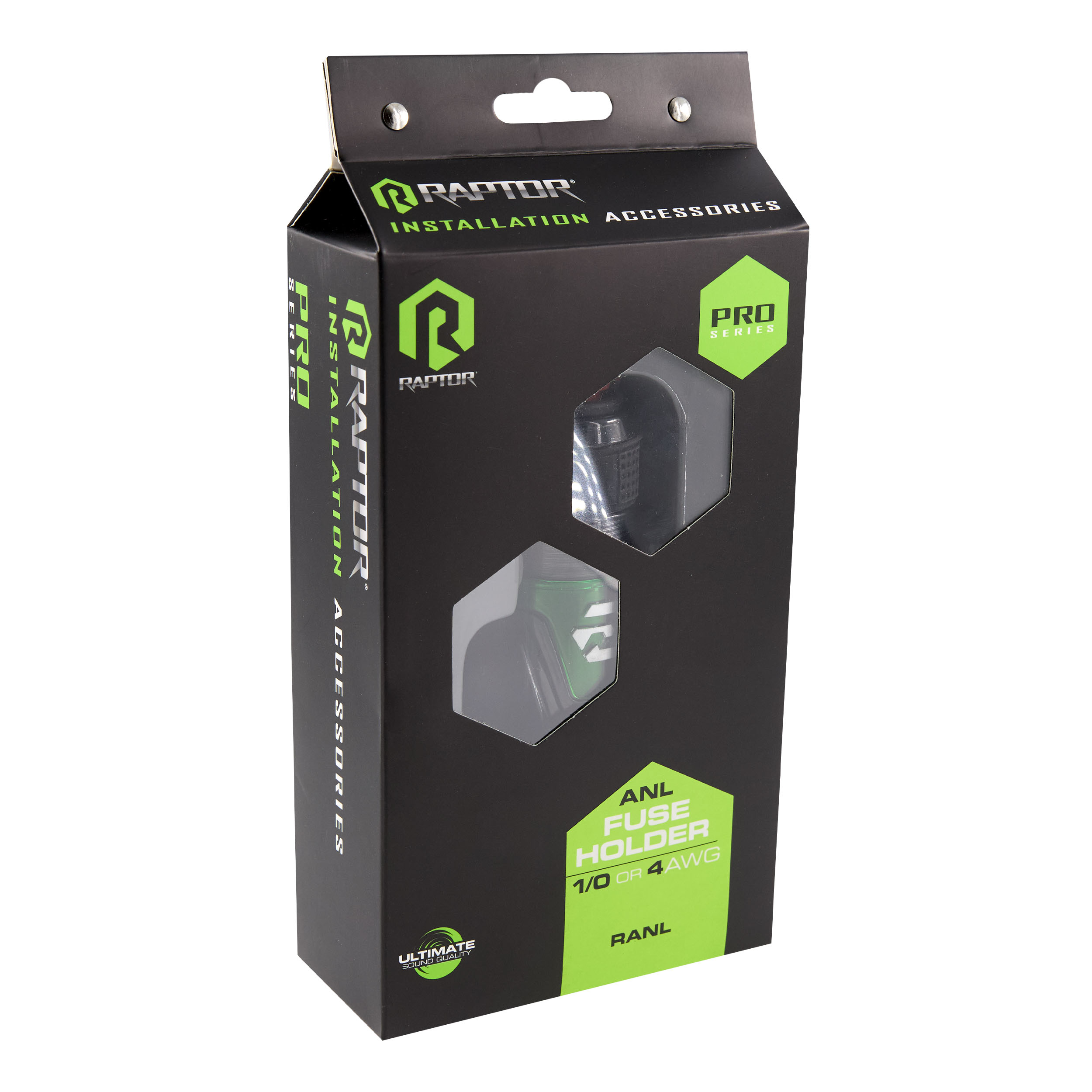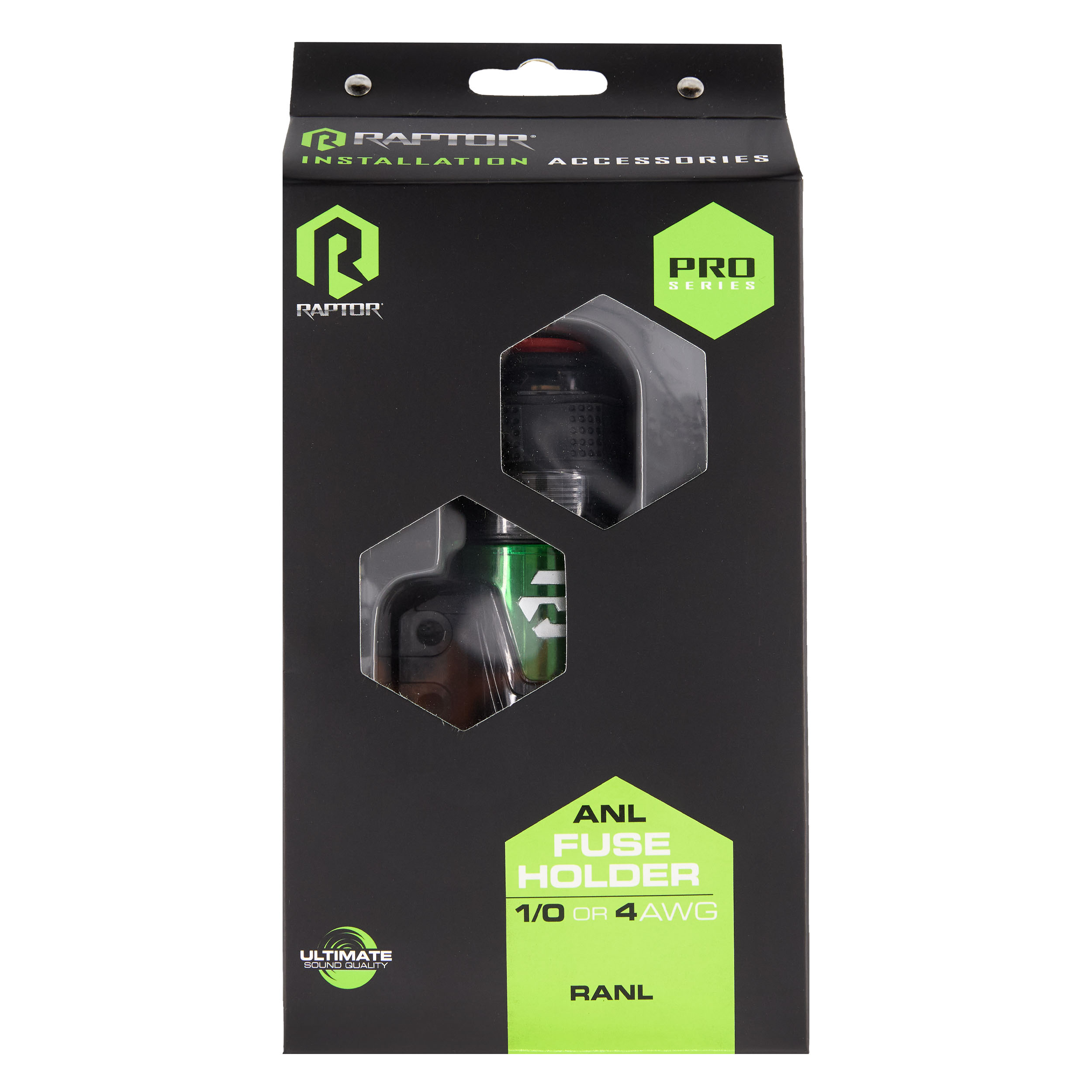 The Raptor Pro Series ANL Fuse Holder is engineered to deliver reliable circuit protection for high-current audio systems. Designed to accept 1/0 or 4 AWG input and output connections, it features 24K gold-plated contacts for maximum conductivity and corrosion resistance. Built to handle high-current applications, its water-resistant construction helps protect against the elements, while precision 3mm Allen screws ensure secure, stable connections. Ideal for demanding installations, it provides dependable performance and ultimate sound quality.