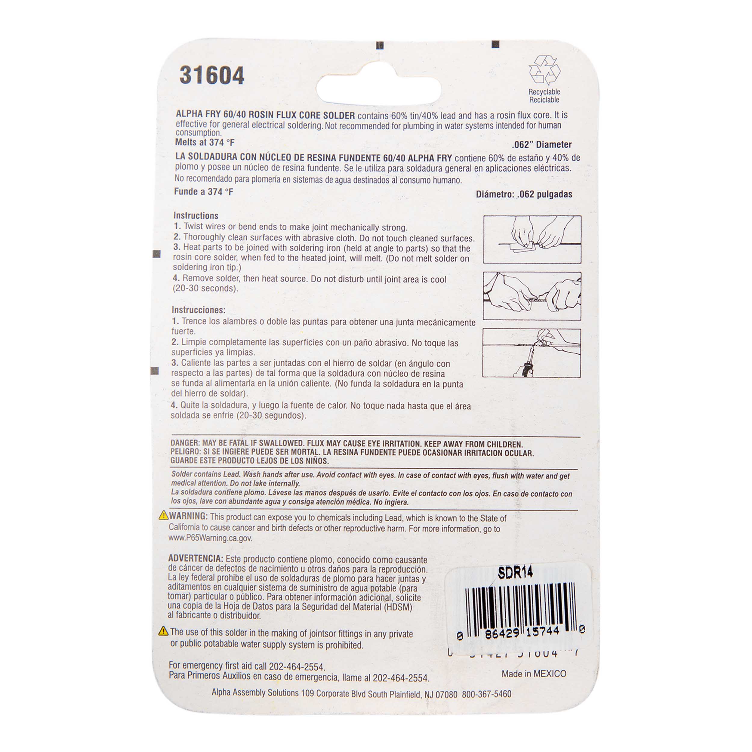 .062 Rosin Core Solder - .25 lb Spool 60/40