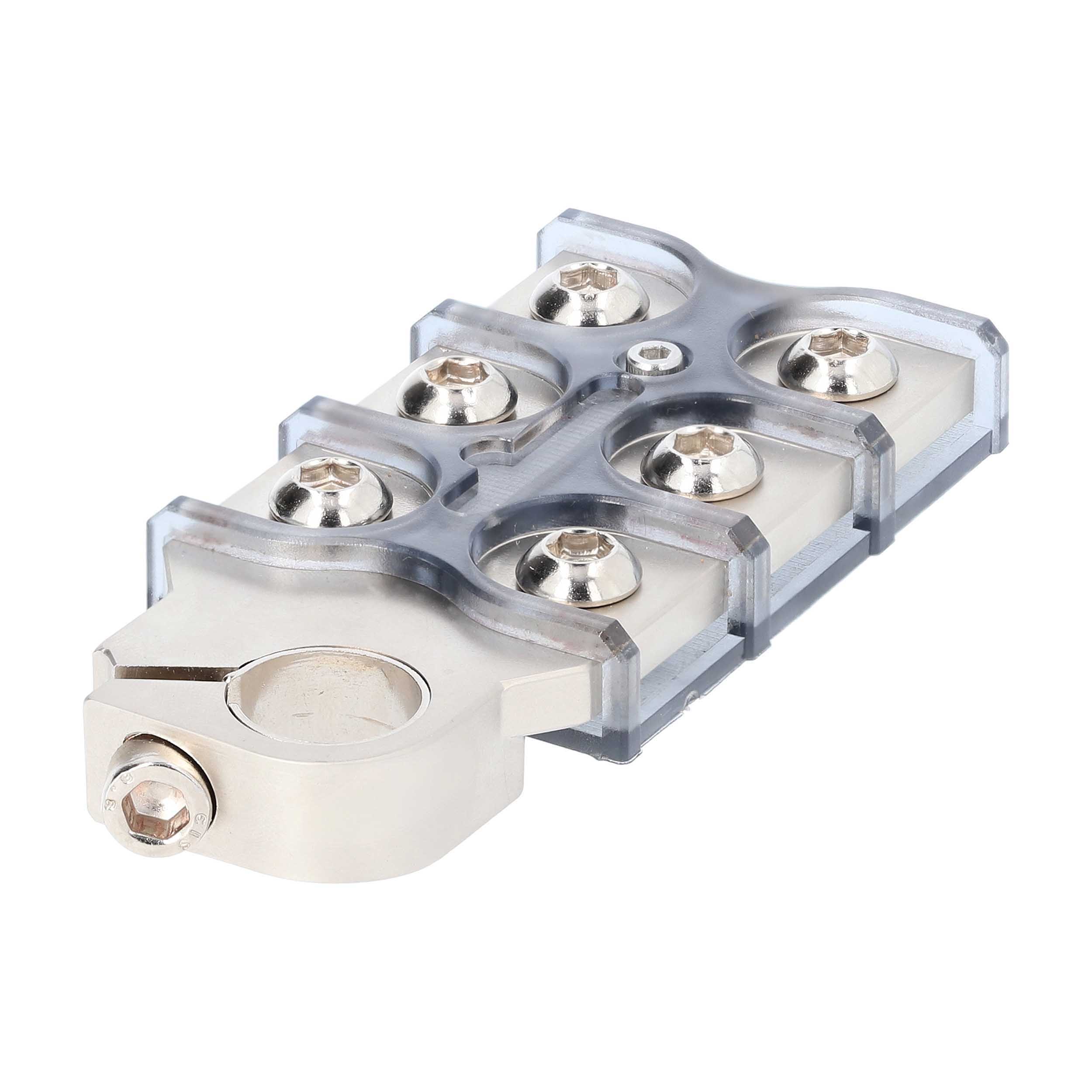 6 terminal bus bar for adding power or ground lines to auxiliary equipment.