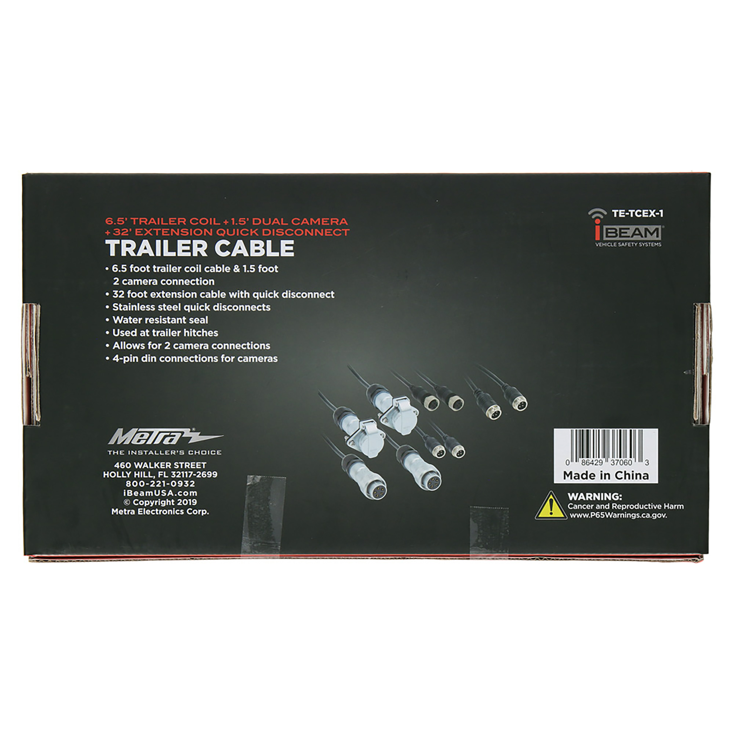The TE-TCEX-1 gives the user the ability to add on two cameras for added visibilty to the sides, back, front, or even inside the trailer. One camera connection even allows a provision for audio feed with a compatible camera. The thread-sealed water resistant connectors provide a safe and secure connection at the trailer hitch in all types of weather. Pair this universal trailer camera cable with any of our iBEAM commercial monitors and cameras.