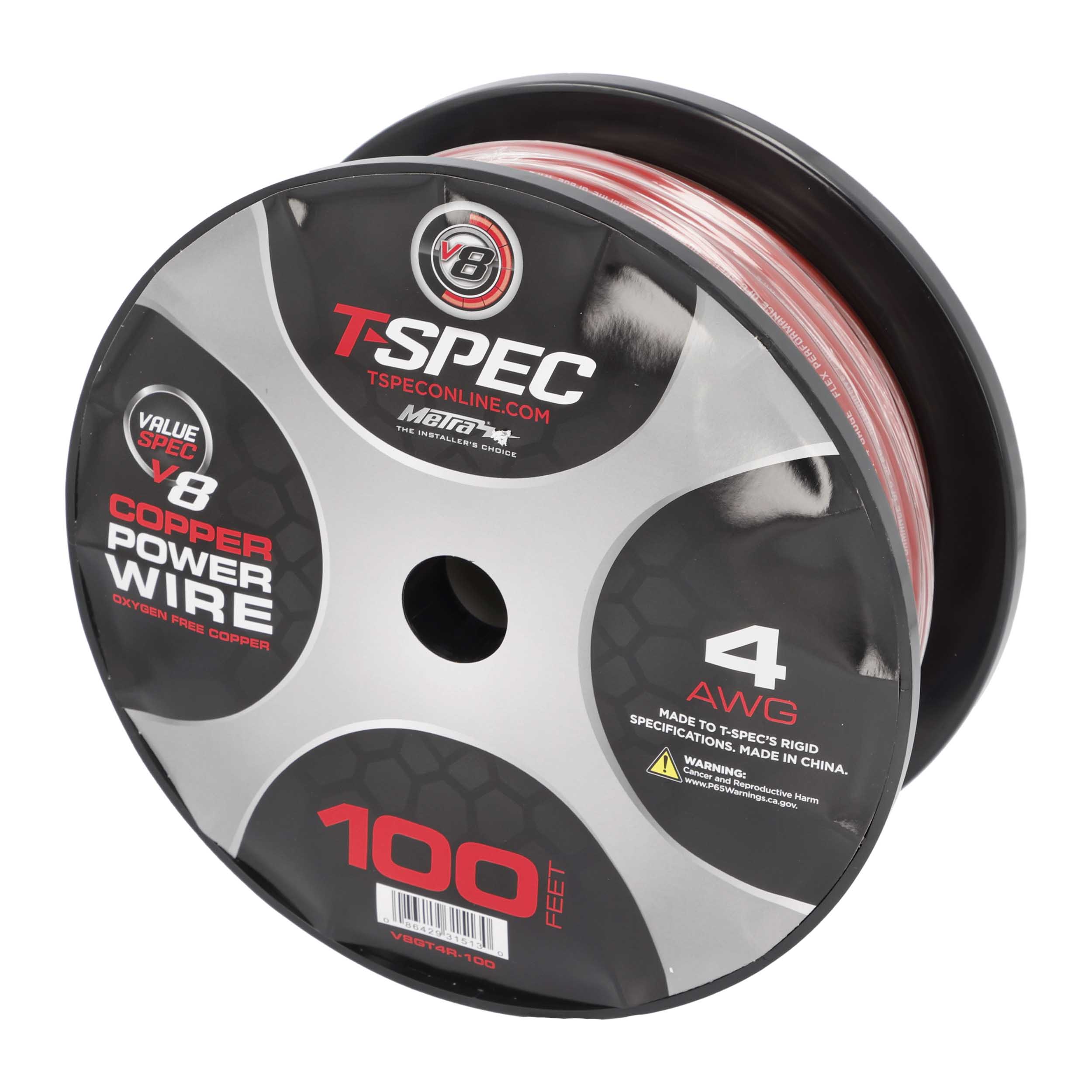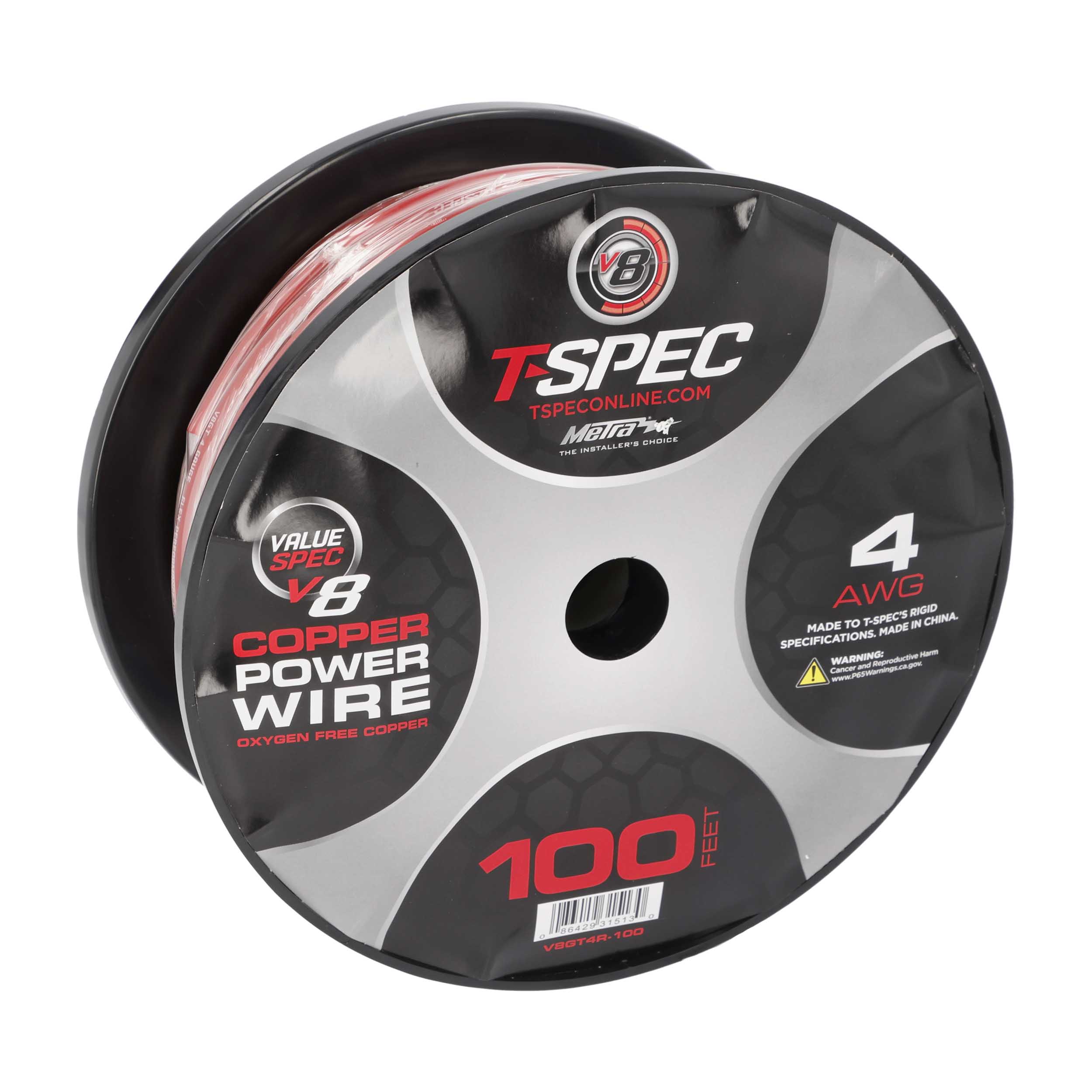 The T-Spec V8GT4R-100 Power Wire delivers dependable power delivery for mobile audio installations. Constructed from oxygen-free copper, it provides excellent conductivity and efficiency, while the super-flex translucent jacket allows for easy routing and clean installs.