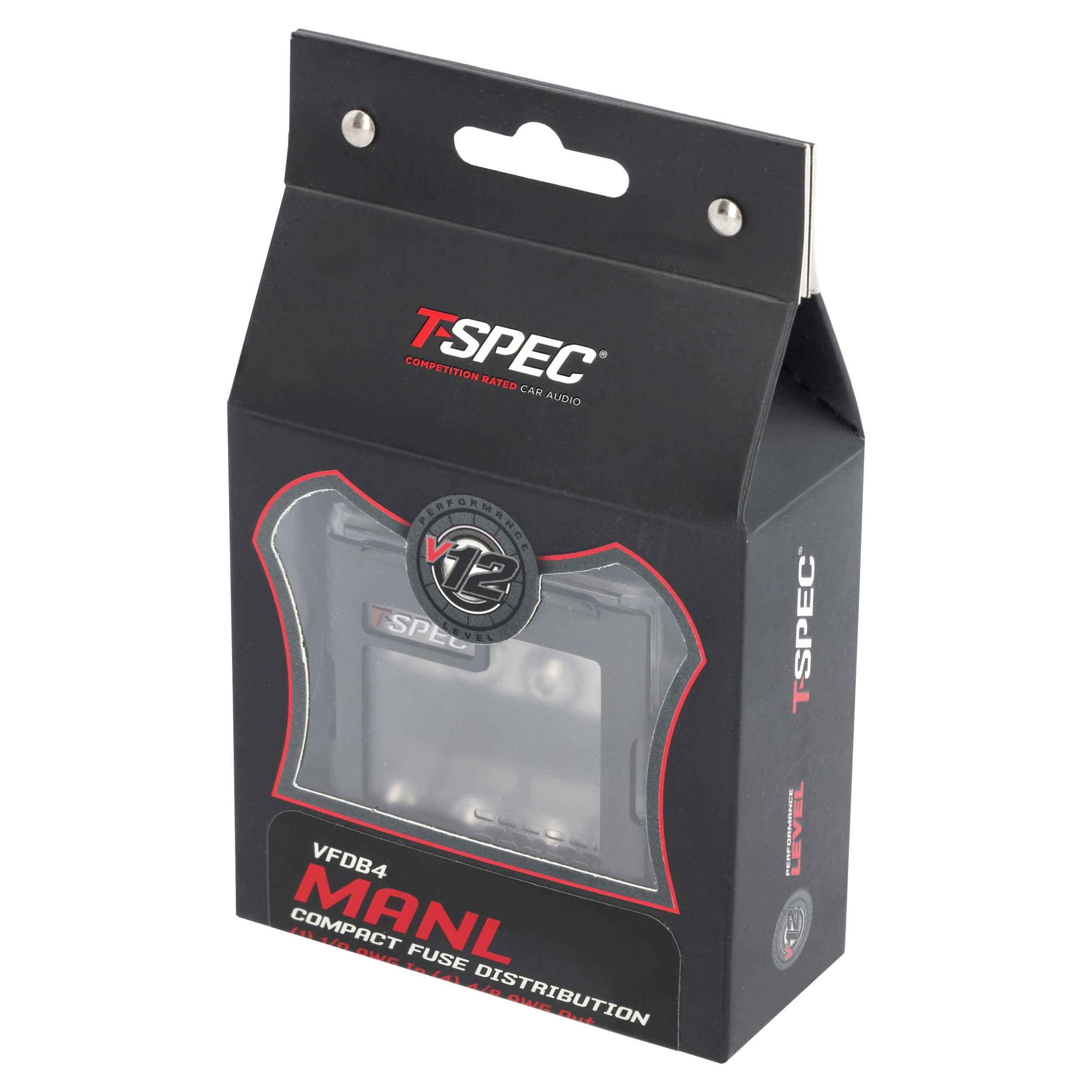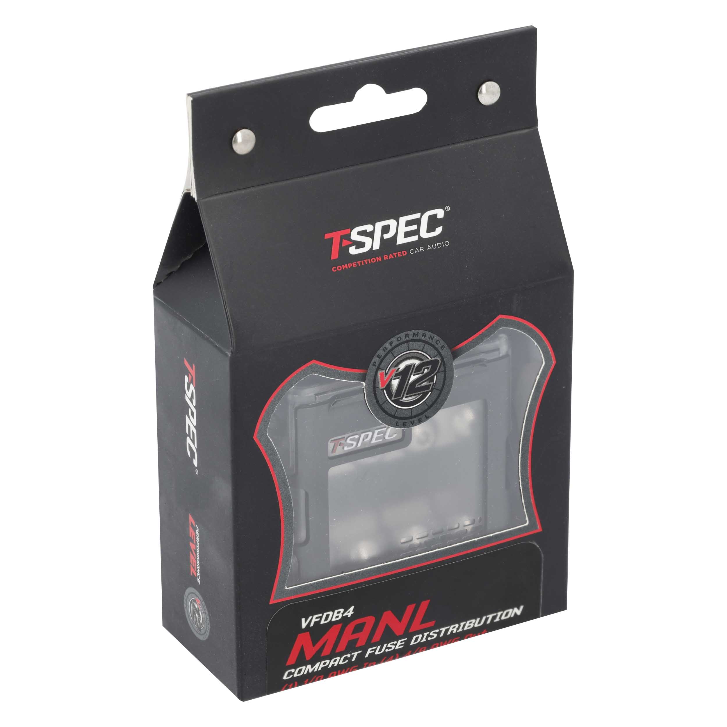 The T-Spec VFDB4 Fuse Distribution Block provides protected power distribution for high-performance mobile audio systems. Designed to work with MANL fuses, it combines power splitting and circuit protection into a single, compact, installer-friendly solution.